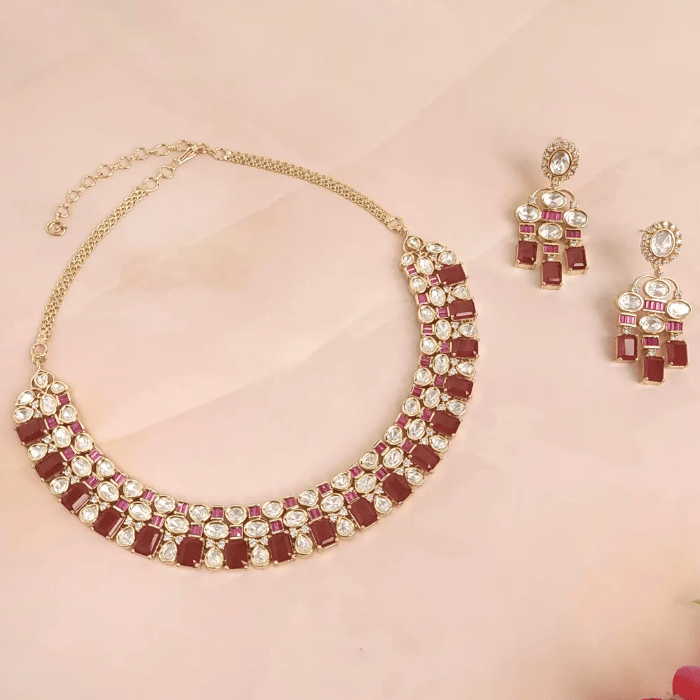 Elegant Polki Kundan Jewelry Set with Stone Accents